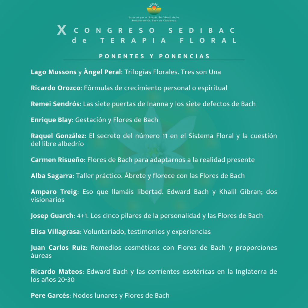Soy miembro profesional de Sedibac y voluntario como Terapeuta Floral en la asociación Oncovida de Sabadell, entidad que atiende a enfermos de cáncer. También he participado como ponente en el X congreso de Sedibac de Terapia Floral donde presenté mi ponencia sobre Nodos Lunares y Flores de Bach.
